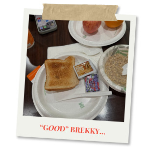 Come morning (when I was in the same clothes I’d been in for 24 hours), I spotted a Target across the road — salvation! Fresh undies, deodorant, clean clothes… it really was the little things at this point. Zali messaged me to say “Come down for brekky, it’s good”, but I’ll let you be the judge of that…